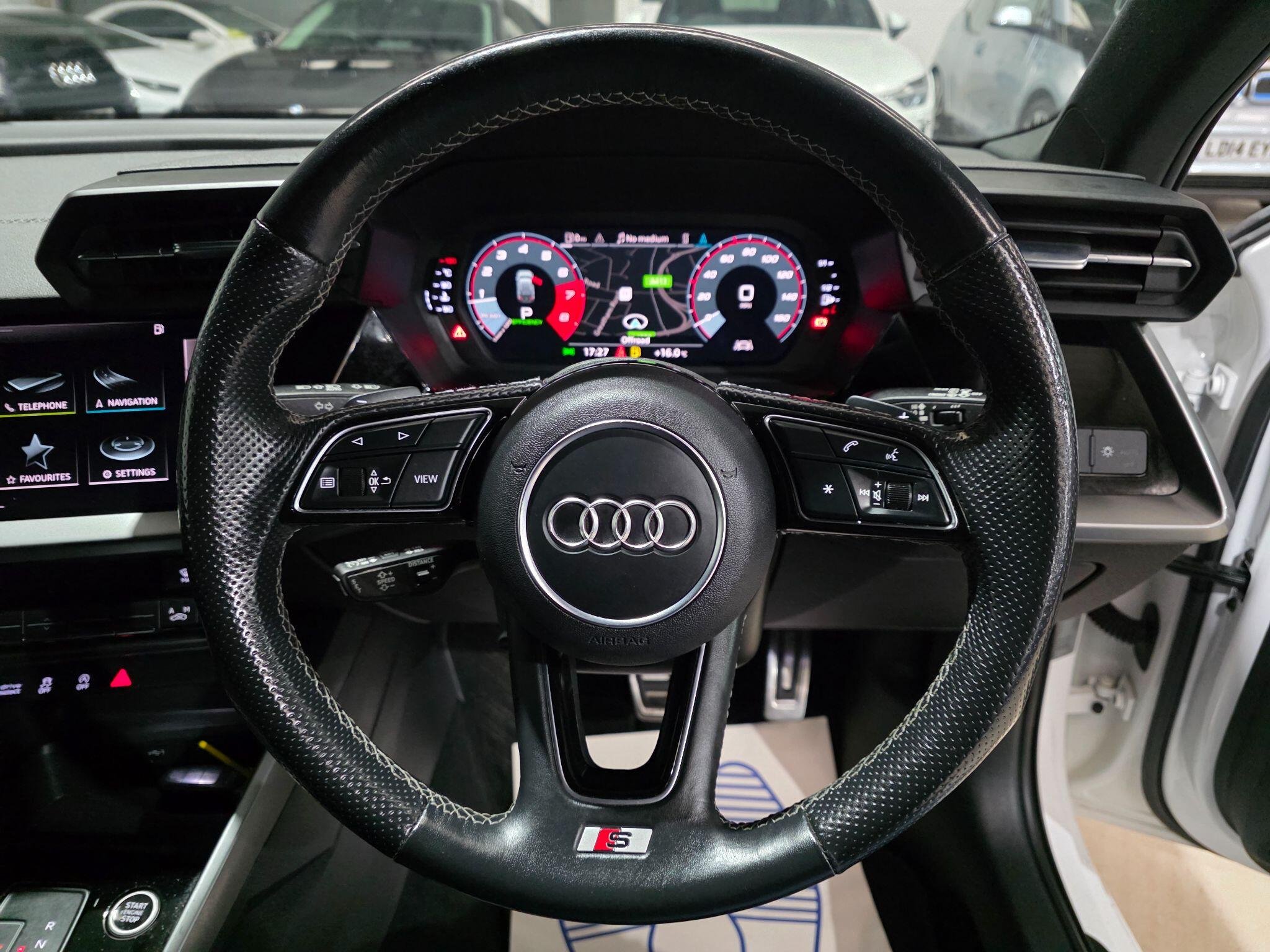 Service History, HPI Clear, Excellent condition,1 Owner From New, MMI Navigation Plus with High Resolution 10.1in Touchscreen Colour Display, Full Black Leather Interior, Park distance control, 1 x USB-C and 1 x USB-C Port Connection - Each with Charge and Data Functions, Lane Departure Warning, S Line Design Body Styling, Audi Smartphone Interface, Acoustic Windscreen, Aluminium Window Trims, Anti Theft Locking Wheel Bolts, Anti-Theft Alarm, Audi Connect Emergency Call and Service, Audi Connect Navigation and Infotainment Services Plus - 3 Year Subscription, 12v Socket and Storage Compartment in Front Centre Console, Audi Drive Select, 6 Passive Loudspeakers, Audi Pre-Sense Front with Pedestrian and Cyclist Recognition, Audi Virtual Cockpit - 10.25in Display, Auto Dimming and Frameless Rear View Mirror, Bluetooth Interface, Body Coloured Door Mirrors, Child Locks - Electric, Cloth Headlining in Black, Collision Avoidance Assistant, Cruise Control, DAB Digital Radio, Driver and Front Passenger Airbag with Front Passenger Airbag Deactivation, Dual-Zone Electronic Climate Control, ESC - Electronic Stabilisation Control inc ABS - ASR and EDL, Electric Windows - Front, Electromechanical Power Steering - Speed-Sensitive Provides a Precise Steering Feel at High Speeds and Excellent Assistance when Parking., Exterior Mirrors - Electrically Adjustable - Heated and Folding - Automatically Dimming on Both Sides with Built-In LED Side Indicators - Including Automatic Kerb-Side Function for the Passenger-Side, Front Sport Seats, Hill Hold Assist, I-Size and Top Tether Child Seat Mounting for the Outer Rear Seats, Inlays - Aluminium Dark Spectrum, Interior Lighting, LED Headlights with LED Rear Lights and Dynamic Rear Indicators, LED Interior Light Package, Light and Rain Sensor, Rear Side Air Outlets - Grained Matt Black, Remote Central Locking, S Line Roof Spoiler, Split-Folding Rear Seat Bench can be Split 40: 20: 40 or Fully, with Centre Armrest and Cupn Holders, Sport Suspension, Steering Wheel - 3-Spoke Leather-Multi-Function with Gear-Shift Paddles,ABS, PAS,Alloy wheels -