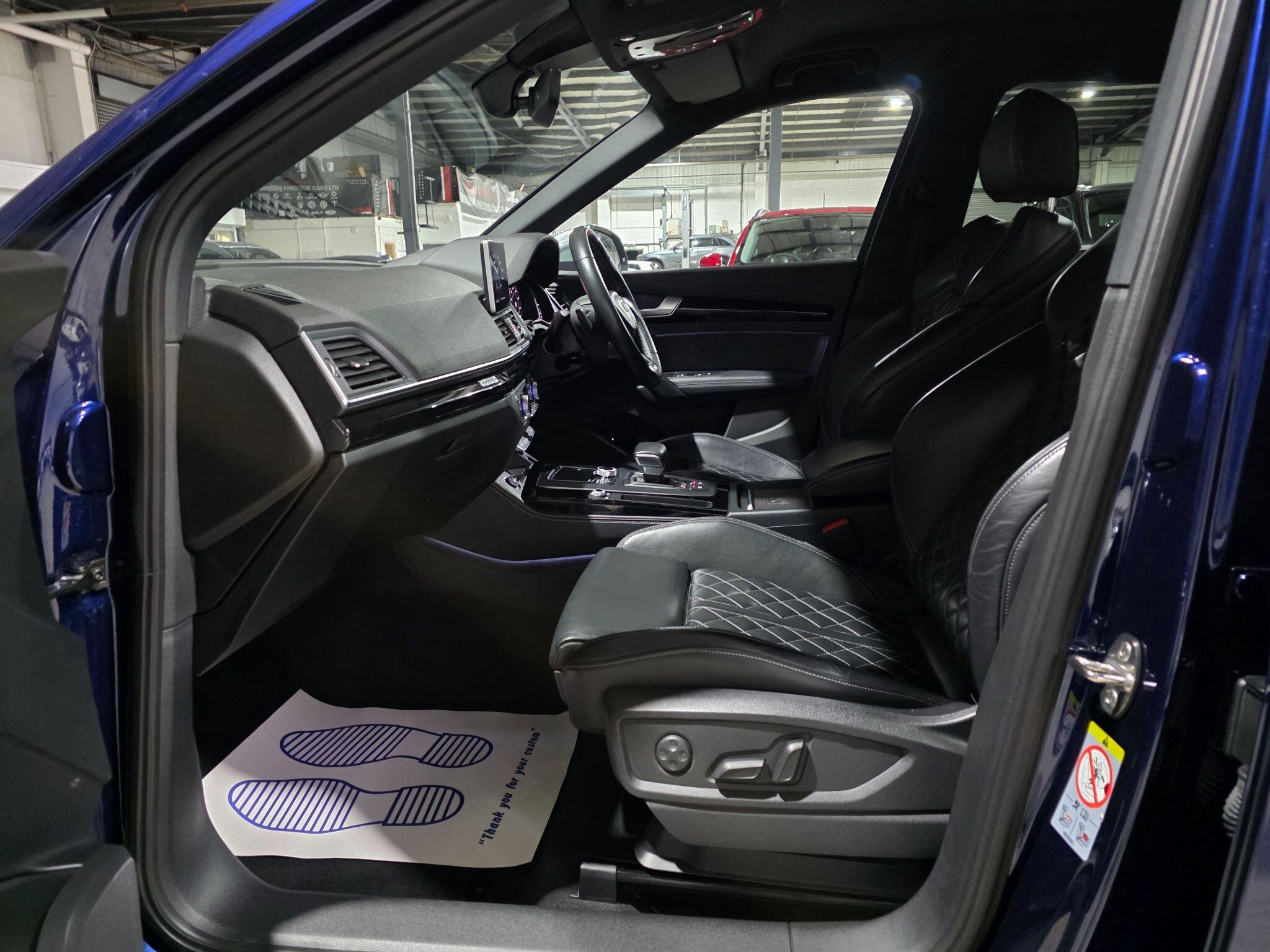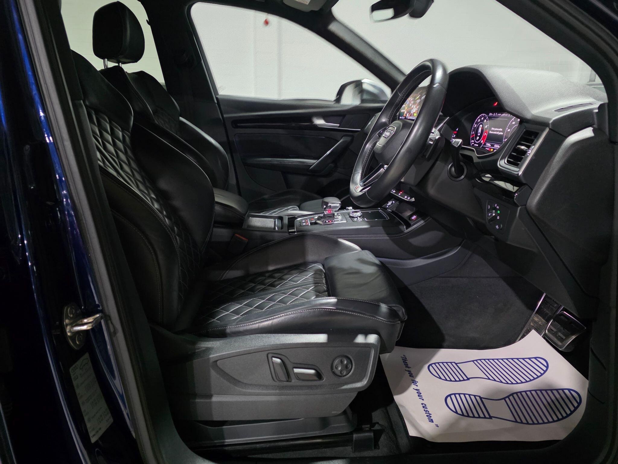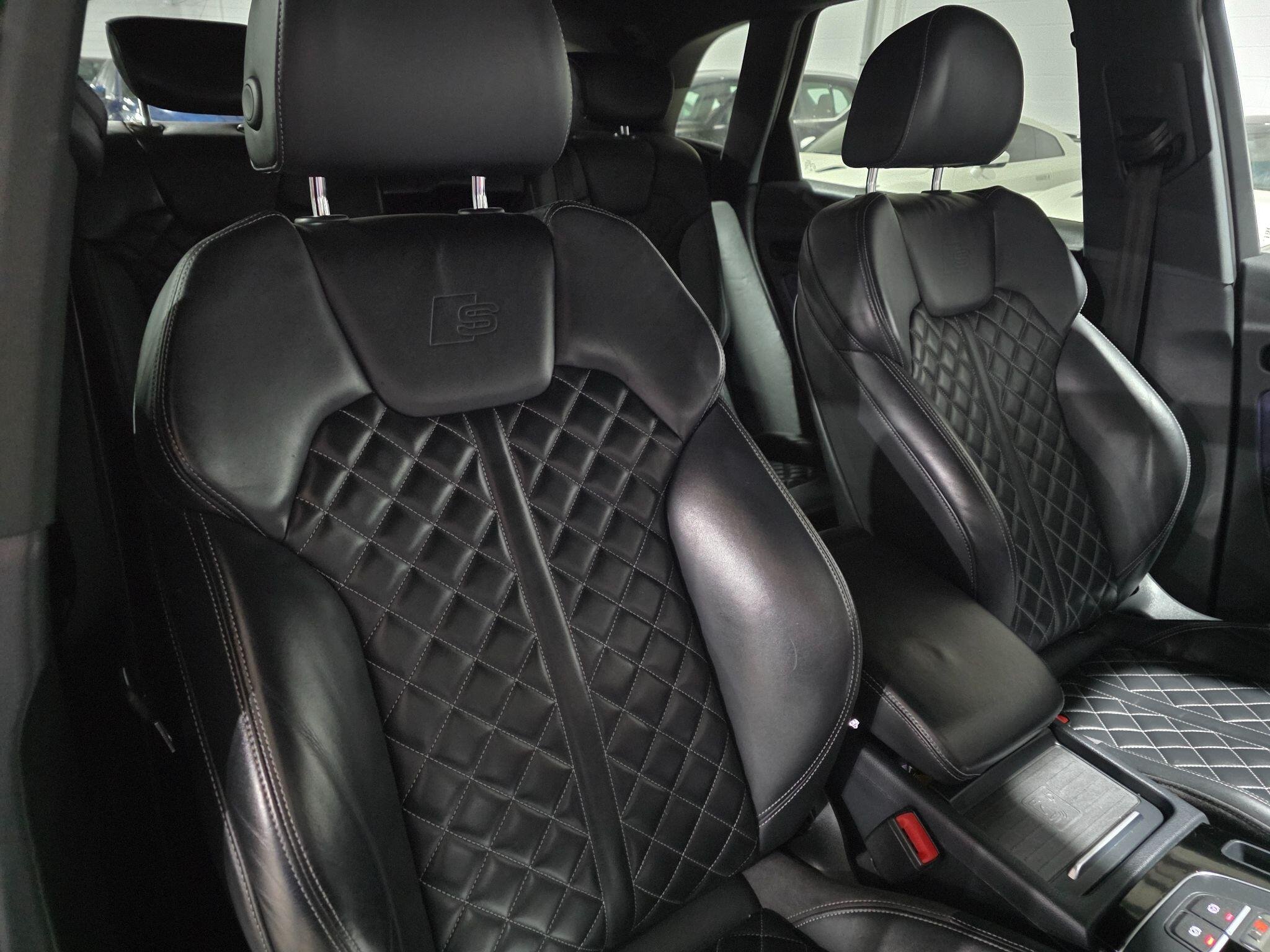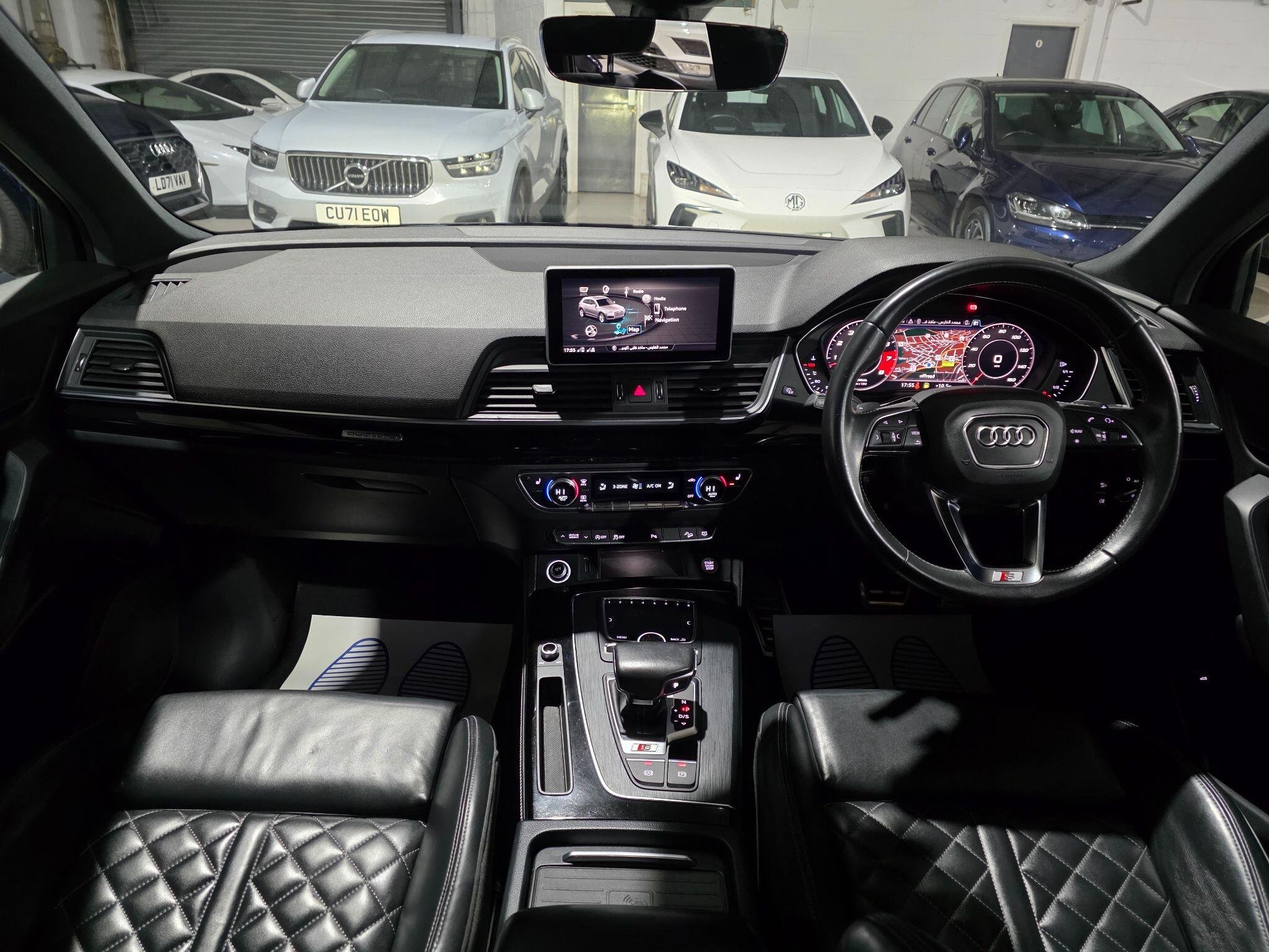 Service History, HPI Clear, Excellent condition, 1 Previous Owner, MMI Navigation Plus including MMI Touch Colour Drivers Information System with 7in Display Full Black Leather Interior, Heated seats Park distance control (Front & Rear ) S Line Front and Rear Bumpers Audi Parking System Plus 2 x SDXC Card Readers 2 x USB Charging Ports and 1 x AUX-IN 4-Way Electric Lumbar Support Aluminium-Effect Door Mirror Housings Anti Theft Locking Wheel Bolts Audi Beam Audi Drive Select Audi Pre-Sense City Audi Smartphone Interface Audi Sound System Auto-Dimming Rear-View Mirror Automatic Headlight Adjustment Bluetooth Interface CD Drive Contrast Stitching on Seats - Steering Wheel and Gear Lever Gaiter Cruise Control with Speed Limiter DAB Digital Radio Deluxe 3-Zone Climate Control Dynamic Suspension Electric Boot Lid Release Electromechanical Parking Brake Email - Calendar and Text Messages can be Displayed on your Vehicles MMI Extended Interior Upholstery Pack Front Sports Seats with S Embossed Logo Front and Rear Floor Mats Heated Front Seats Hill Descent Control Hill Hold Assist Inlays - Matt Brushed Aluminium Key with SQ5 Logo Keyless Go LED Headlights with LED Rear Lights and Dynamic Rear Indicators LED Interior Lighting Pack LED Rear Lights Pop-Up Bonnet for Pedestrian Protection Power Operated Tailgate S Dual-Branch Tailpipe Design in Matt Aluminium S Instrument Dials S Line Side Skirts S Rear Diffuser in Body Colour with Matt Aluminium Surrounds with Honeycomb Grille in Black S Side Air Inlet Grille in Matt Titanium Black with Horizontal Inlays in Matt Aluminium Windscreen with Acoustic Glass quattro On Demand airbags, ABS, PAS, Spare key, 20in Alloy Wheels - 5-Twin-Spoke Star Design Contrasting Grey - Diamond Cut -