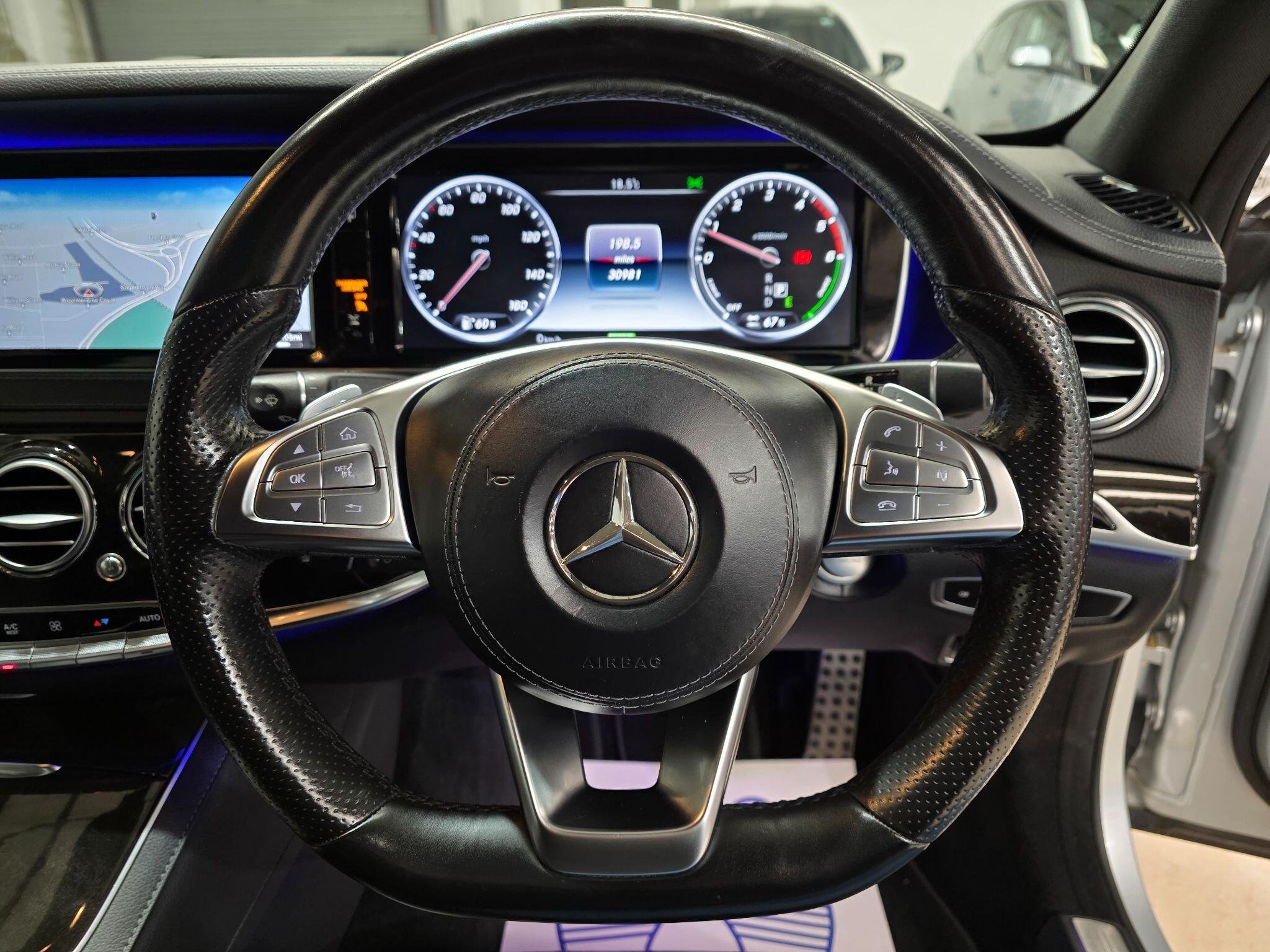 Full Service History, HPI Clear, Excellent condition, 1 Owner From New, Navigation system Instrument Cluster with 12.3in TFT Colour Display and ECO Display Parking Sensor - Front Bluetooth Interface for Hands-Free Telephone Parking Sensor - Rear DAB Digital Radio Tuner CD-DVD Radio Reversing Camera, 360 D Camera ,Full Black Leather Interior, Electric seats, Memory Seats, Heated seats Active Park Assist with Parktronic, Multi-function steering wheel, 10GB Music Register and MP3 Compatibility 12V Socket in Front Centre Console 12V Socket in Luggage Compartment 12V Socket in Rear Passenger Compartment 3 Years Free European Map Updates AIRMATIC Air Suspension with Level Adjustment and Adaptive Damping System AMG Bodystyling - Front and Rear Apron - Side Skirts AMG Brushed Stainless Steel Sports Pedals with Rubber Studs Floor Mats - Velour - AMG Lettering Front Passenger Seat - Full Electric Adjustment Front Passenger Seat with Pre-Safe Positioning Function Head Restraints - Electrically Adjustable Head Restraints - Luxury Rear with Additional Comfort Cushion Head Restraints - Rear - Electrically Lowering Modes - Focused-Medium and Diffuse Tinted Glass - Green Tirefit Tyre Sealant Kit Touchpad for COMAND Online System Traffic Sign Assist Trim - Black Poplar Wood ABS - Anti-Lock Braking System eCall - Emergency Call System, Folding Mirrors, Fog lights, Xenon light, Bluetooth, airbags, ABS, PAS, Spare key, Alarm System with Interior Protection Tyre Pressure Monitoring System 19in Alloy Wheels - AMG 5 Twin Spoke Design -