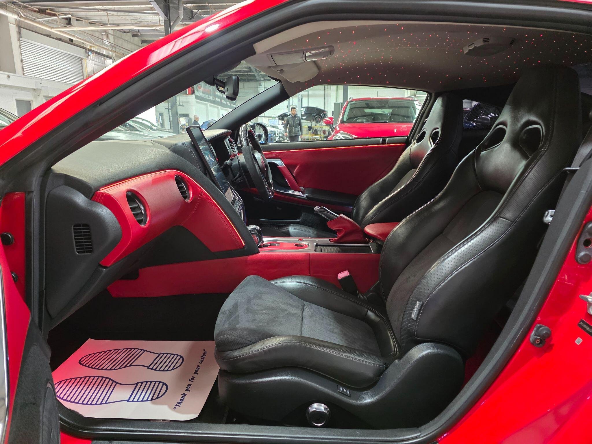 Nissan R35 GT-R | Top Secret Carbon | One-of-One Lamborghini Red An exceptional Nissan R35 GT-R, tastefully modified with high-end components and maintained to an outstanding mechanical standard. This is a rare opportunity to own a one-of-one GT-R finished in Lamborghini red, paired with a full Top Secret carbon exterior. Exterior & Styling • Full Top Secret carbon body kit • Top Secret boot spoiler • Carbon side skirts • Top Secret rear fender extensions • Professionally resprayed Lamborghini red (one-of-one colour) Performance & Upgrades • Knight Racer 4.25 tune • Flame kit (professionally set up to produce flames without engine damage) • 104mm (4-inch) exhaust sy ? Maintenance & Condition • 54,000 miles • Full service history • Recently completed major engine and gearbox service • Upgraded forks • Upgraded transmission TSB clip piston cap • Mechanically mint condition • Bodywork requires minor cosmetic touch-ups only • HPI clear Additional Features • Upgraded front and rear EBA lights • Upgraded alloy wheels with almost new tyres • 14.4” Apple CarPlay Android multimedia screen • Starlight headliner with shooting stars • Multi-colour interior LED ambient lighting This GT-R has been enthusiast-owned, well maintained, and carefully upgraded. It delivers serious performance, aggressive presence, and a truly unique specification. Serious enquiries only -