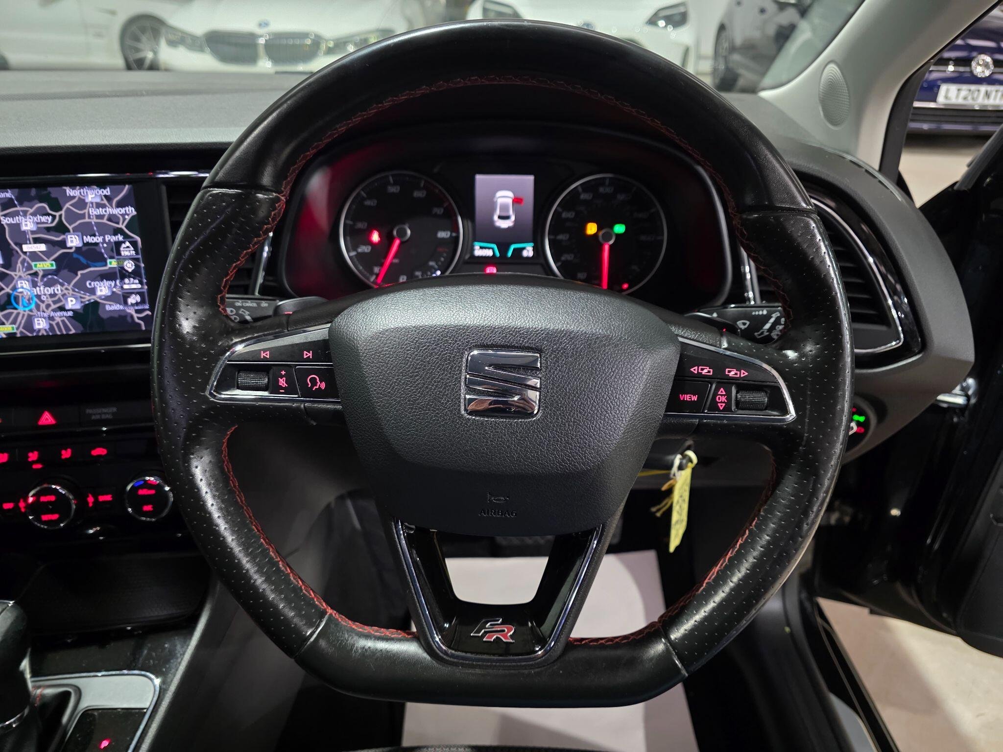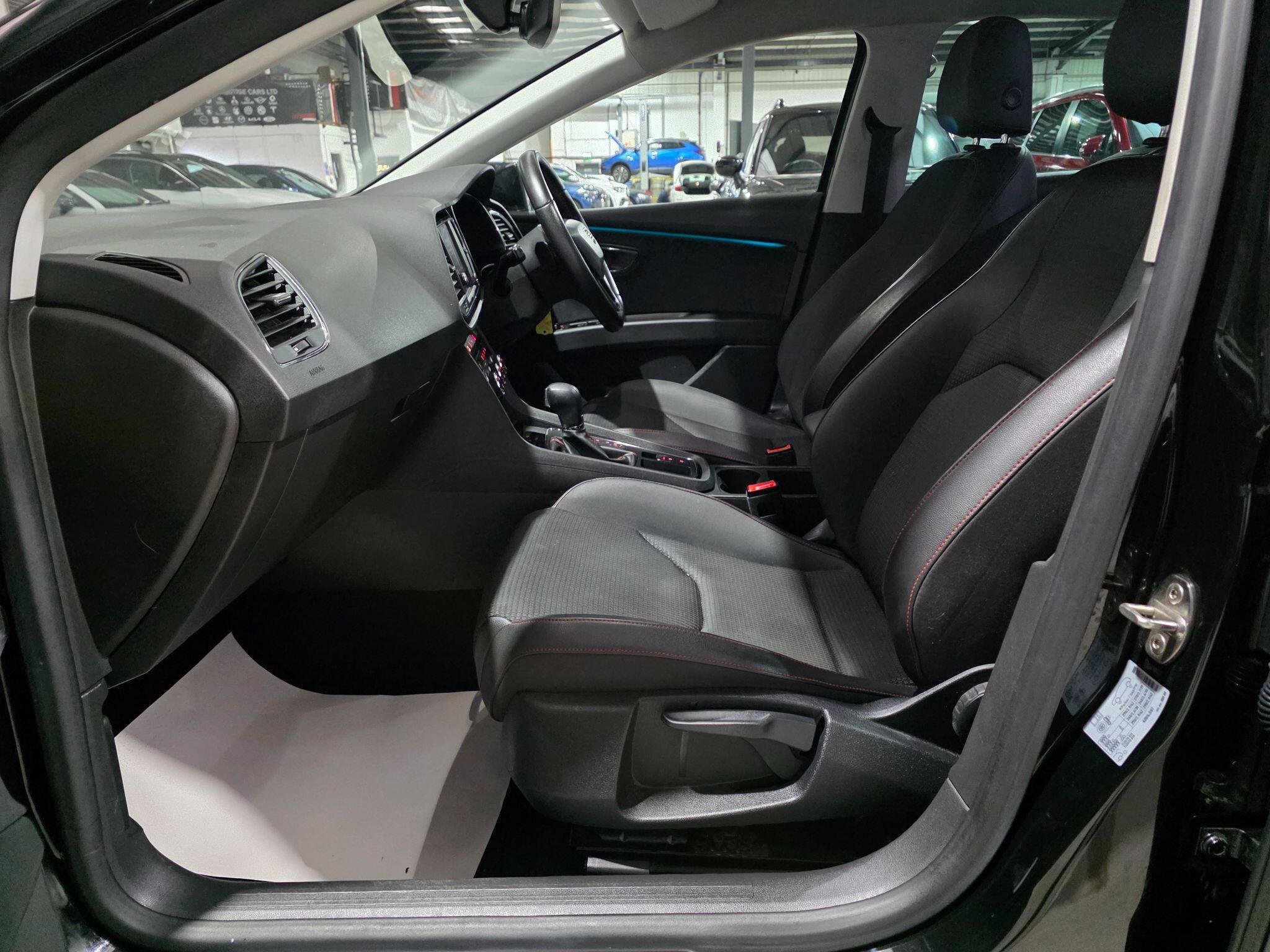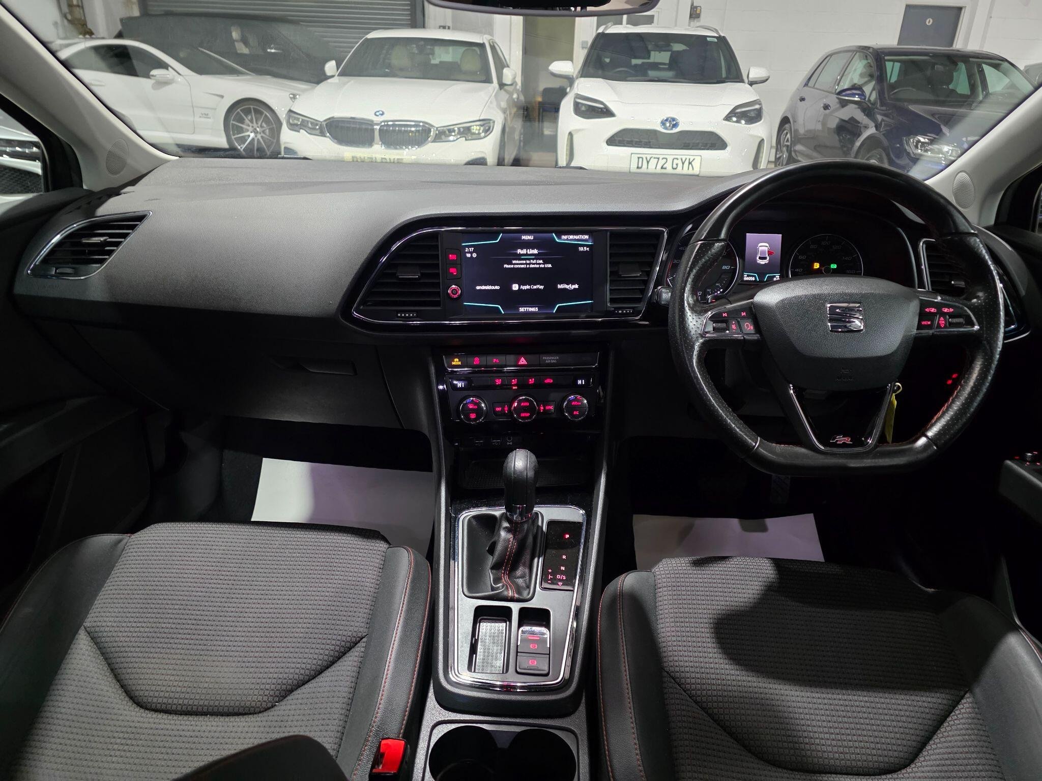 Full Service History, HPI Clear, Excellent condition,1 Previous Owner USB Cable for Apple and Android Compatibility Navigation System SEAT Full Link Smartphone Integration - Mirror Link - Apple CarPlay - Google Android Auto Park distance control (Front & Rear ) Body-Coloured Door Handles Body-Coloured Door Mirrors with Integrated LED Indicators Boot Storage Net Bumpers - Exclusive FR Front and Rear Convenience Pack Plus Cruise Control Digital Clock Drivers Seat Lumbar Adjustment Dual Zone Climate Control ESC - Electronic Stability Control and Tyre Pressure Warning Light Indicator Front Sports Seats Front and Rear Electric Windows Front and Rear Parking Sensors Full LED Headlights Interior Chrome Detailing Interior FR Black - Black Glossy LED Interior Illumination Pack Lights Left On Warning Buzzer Lower Suspension - 15mm Multi Coloured Ambient Lighting Multi-Collision Braking System Outside Temperature Gauge RPM Counter Radiator Grille Frame in Chrome Radiator Grille in Black Remote Central Locking with Deadlocks SEAT Drive Profile Seatbelt Reminder - Front Seats - Passenger Lumbar Adjustment Split Folding Rear Seats - 60-40 Sports Suspension Storage Box Under Drivers Seat Trip Computer Two Height-Adjustable Front and Rear Headrests Two Remote Keys with Window Open-Close - Door Mirror Folding and Boot Opening Functionality Visual Twin Exhaust Pipes airbags, ABS, PAS, Spare key, 17in Alloy Wheels - Dynamic 30-2 -